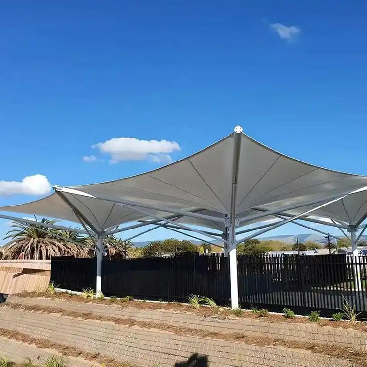 随着城市化进程的不断加快,停车问题越来越成为城市管理中的一大难题。在众多解决方案中,永康市的7字型膜结构停车棚凭借其独特的设计和优越的性能,逐渐受到广泛关注。这种停车棚不仅在美观上颇具现代感,还在功能性、耐用性和环保性等多方面表现出色,是当下城市停车设施的理想选择。 一、7字型膜结构停车棚的设计理念7字型膜结构停车棚的造型如其名,呈现出一种简洁而富有流动感的设计,以“7”字形